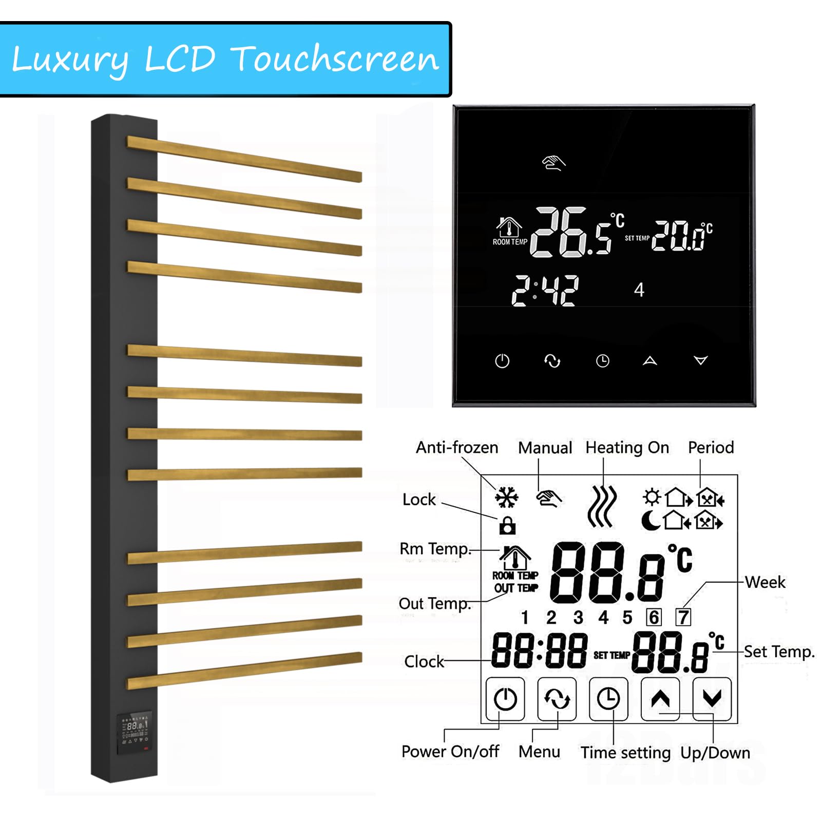 - Intelligent et Intuitif:le thermostat intelligent à affichage numérique peut afficher clairement la température actuelle du sèche-serviettes électrique, la température peut être réglée entre 30 °C et 60 °C et la minuterie peut être réglée entre 1 et 8 heures, ce qui donne ta vie est plus intelligente et plus pratique