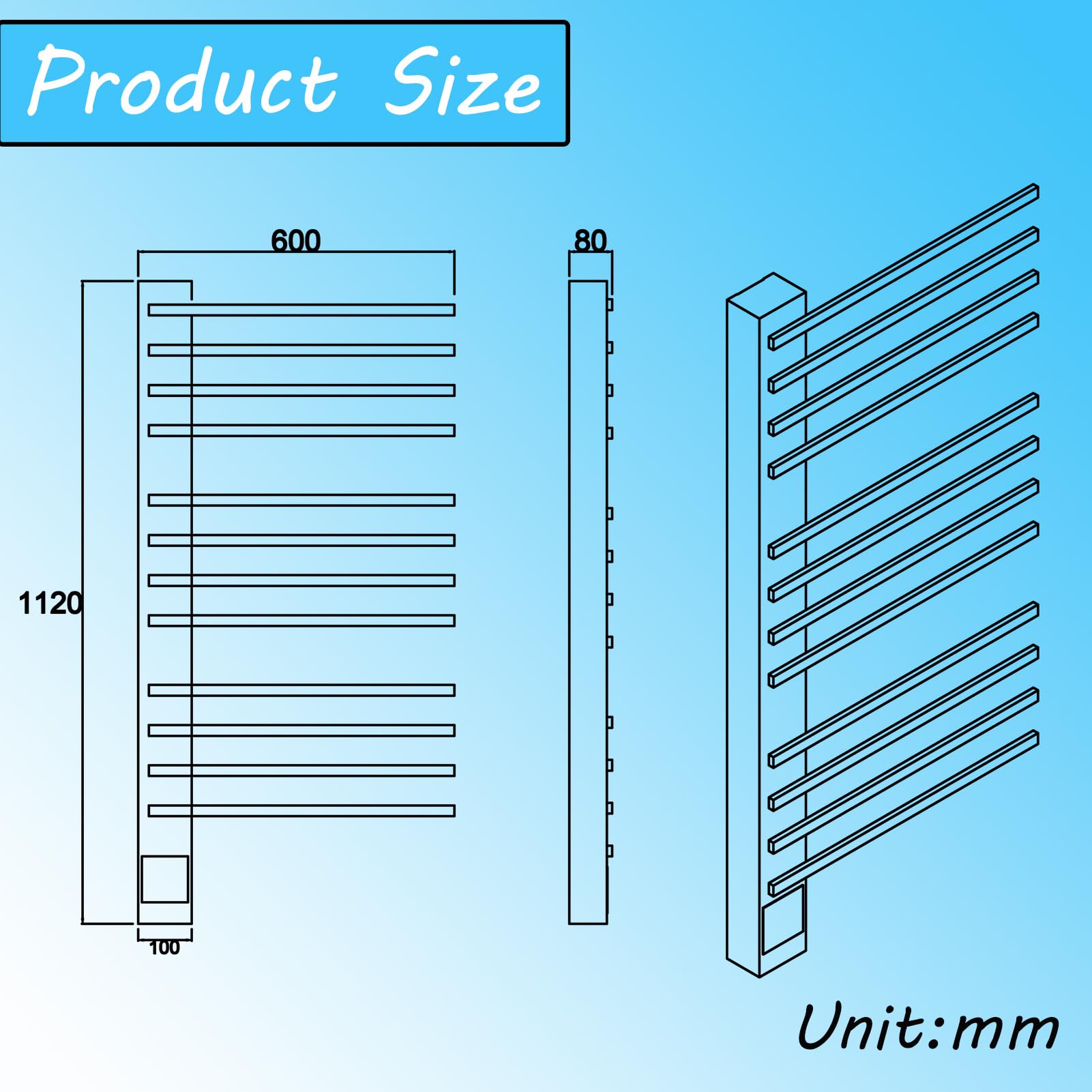 - Qualité Sans Compromis:Nous savons que le luxe est autant une question de durabilité que de beauté. Notre porte-serviettes électrique est soigneusement fabriqué en acier inoxydable 304 pour garantir sa longévité et sa fiabilité. Technologie de chauffage améliorée en fibre de carbone, la vitesse de chauffage est rapide et dispose d'une fonction de protection contre la surchauffe pour empêcher la température de surface d'être trop élevée